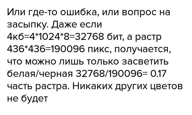 для хранения растрового изображения размером 466 на 466 пикселей отвели 4 КБ памяти. Каково максимально возможное число цветов в палитре изображения?