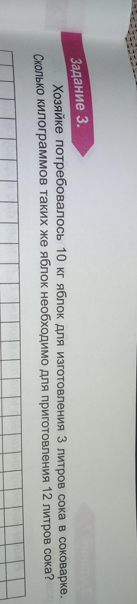 Пошаговое объяснение:Составим пропорцию : 10 кг-3л Хкг-12л х=10 *12 /3=40(кг)