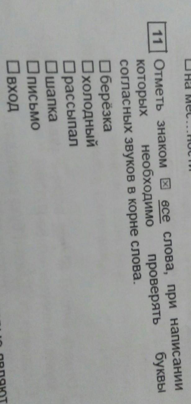 отметь знаком все слова,при написании которых необходимо проверять буквы согласных звуков в корне слова