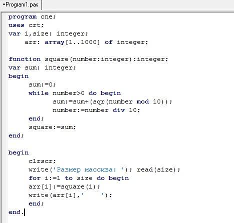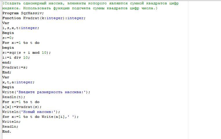 Создать одномерный массив, элементы которого являются суммой квадратов цифр