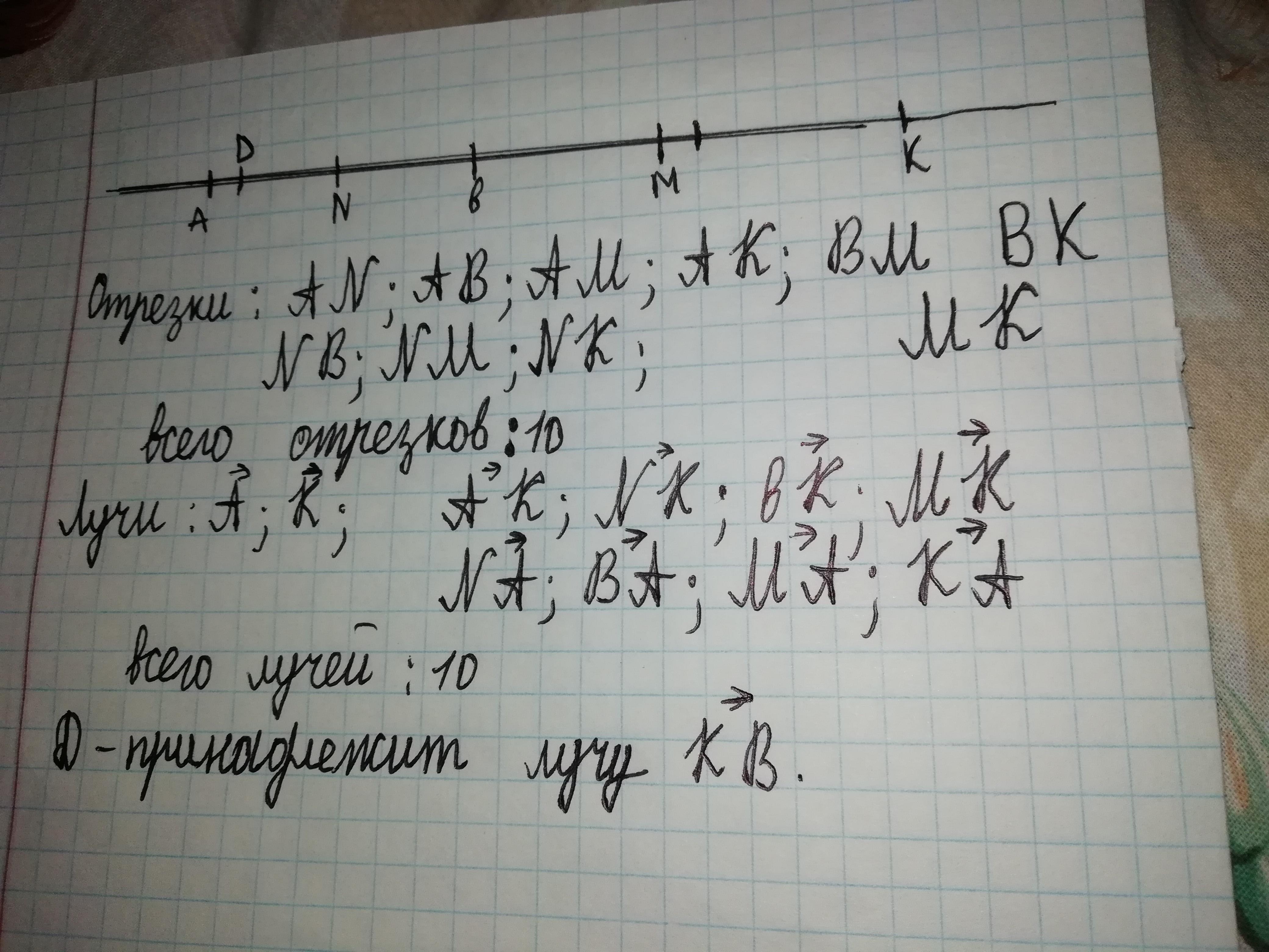 Отрезок 10 образовалось. Образовалось 10 лучей. D-принадлежит лучу KB