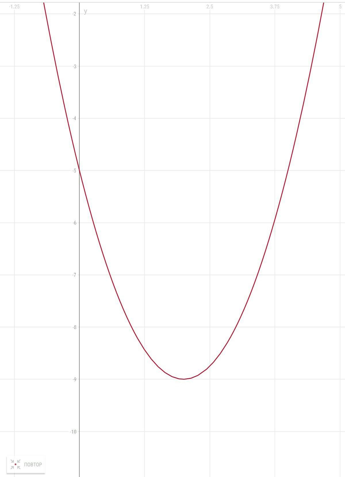 x = 0 и y(0) = - 5 - на оси ОУ.