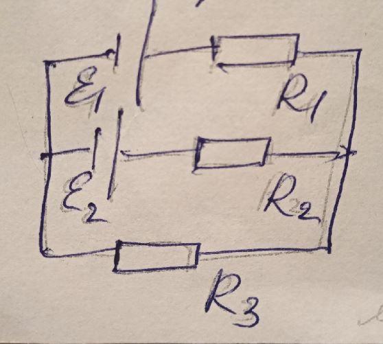Найти ток через R2. Внутренними сопротивлениями источников пренебречь.