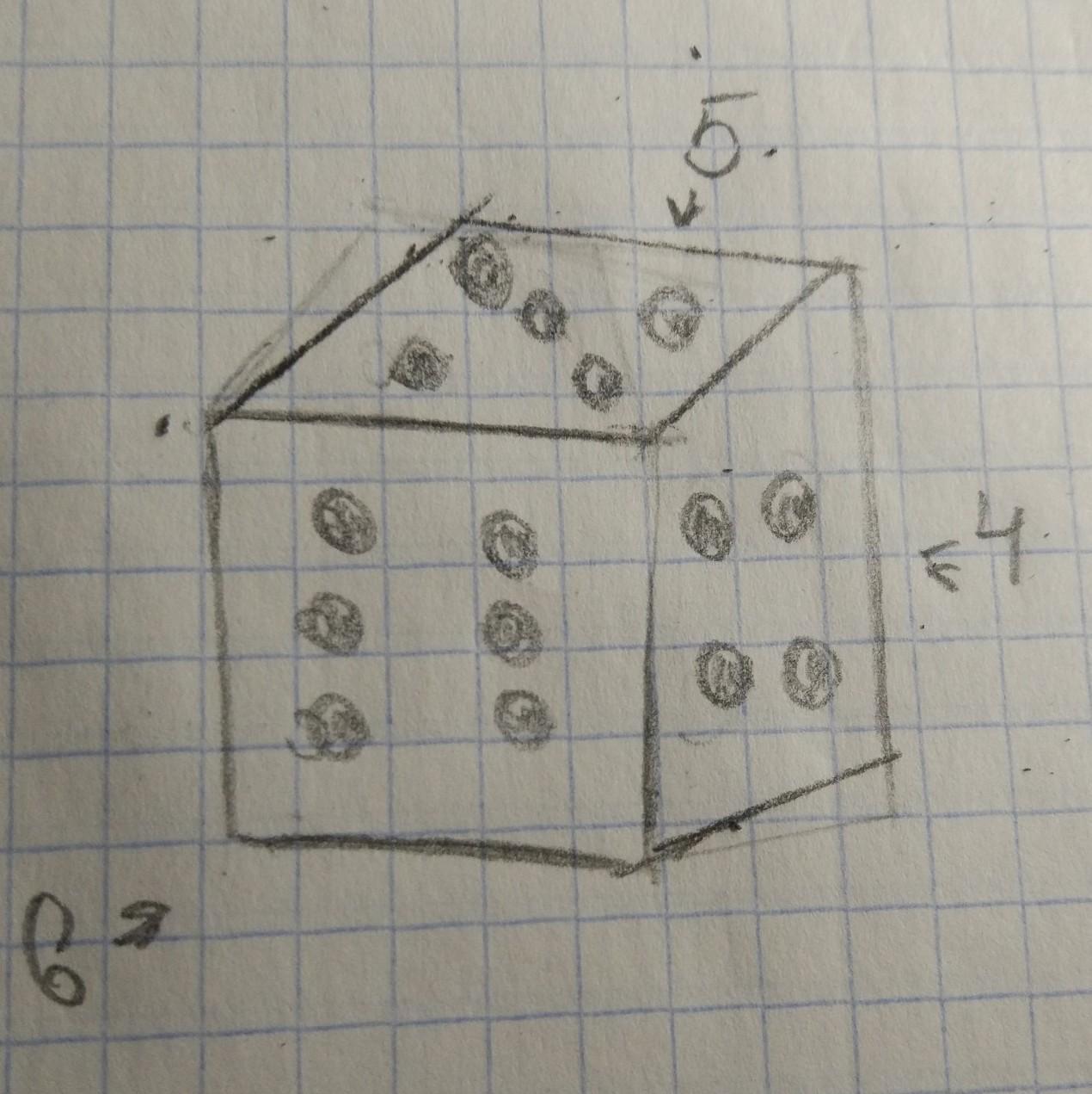 Правая передняя грань 4, правая задняя 1, верхняя 5, левая задняя 3,