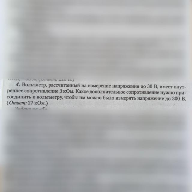 Rд=Rv*(n-1) n=U/Uv=300/30=10 Rд=3*(10-1)=27 кОм