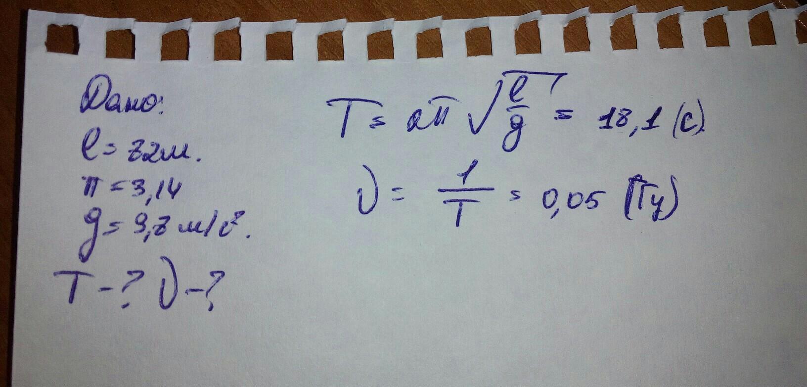 математический маятник имеет длину 82м. Определи период и частоту колебаний такого маятника. При расчетах прими пи = 3,14 g=9,8 м/с2