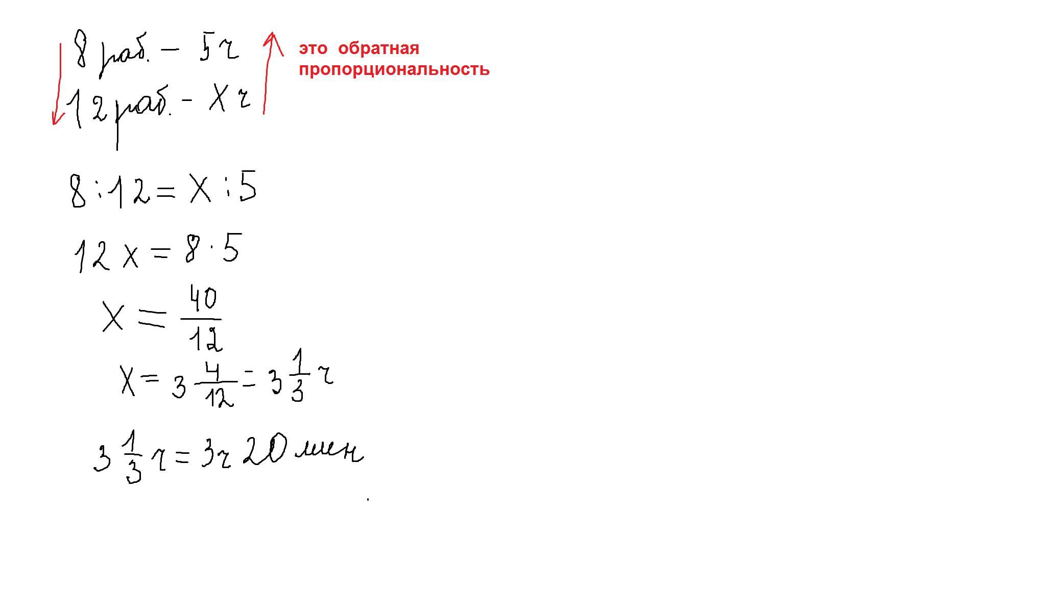Восемь рабочих выполняют работу за 5 часов.Сколько времени понадобится 12 рабочим чтобы выполнить ту же работу?