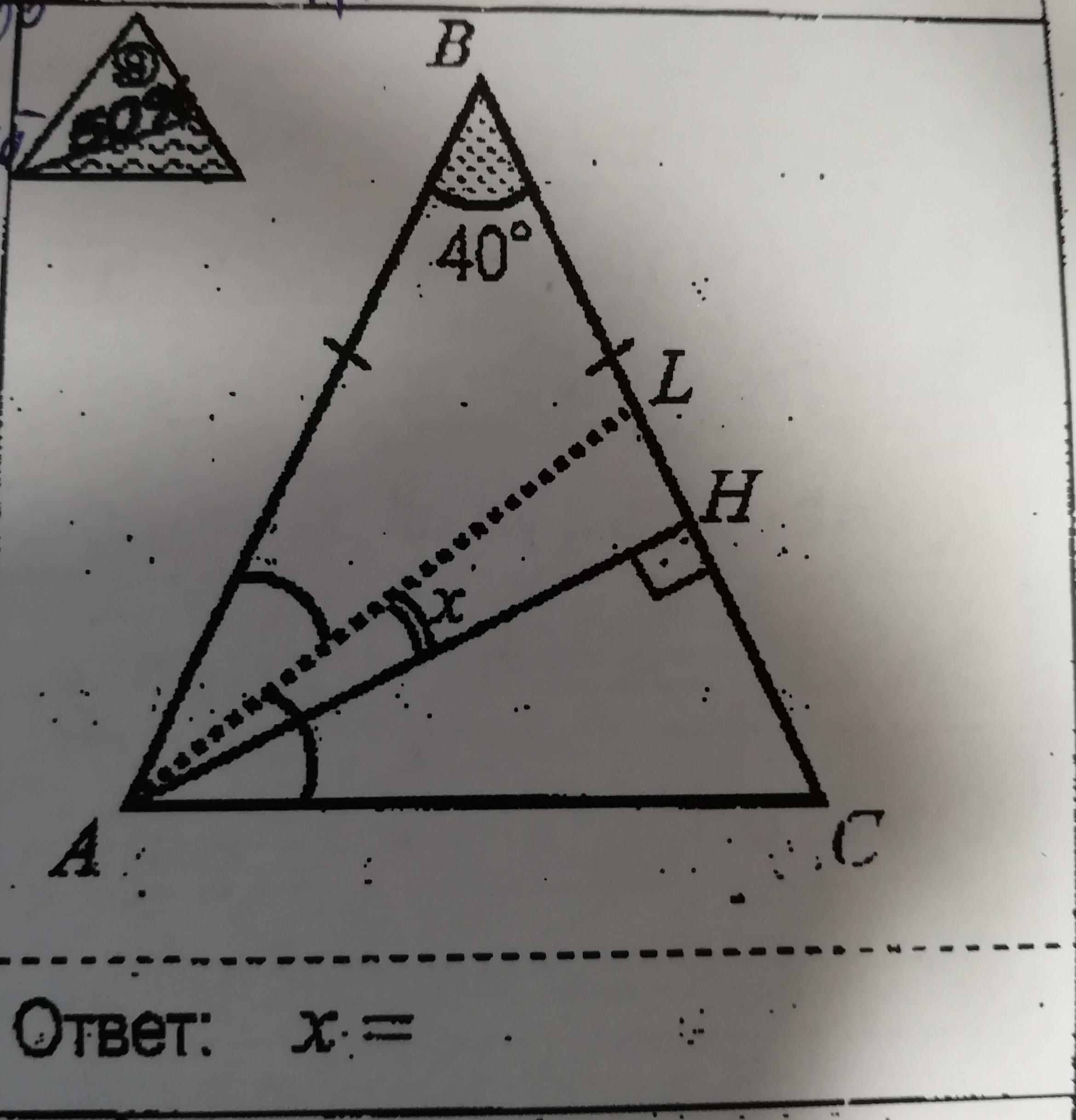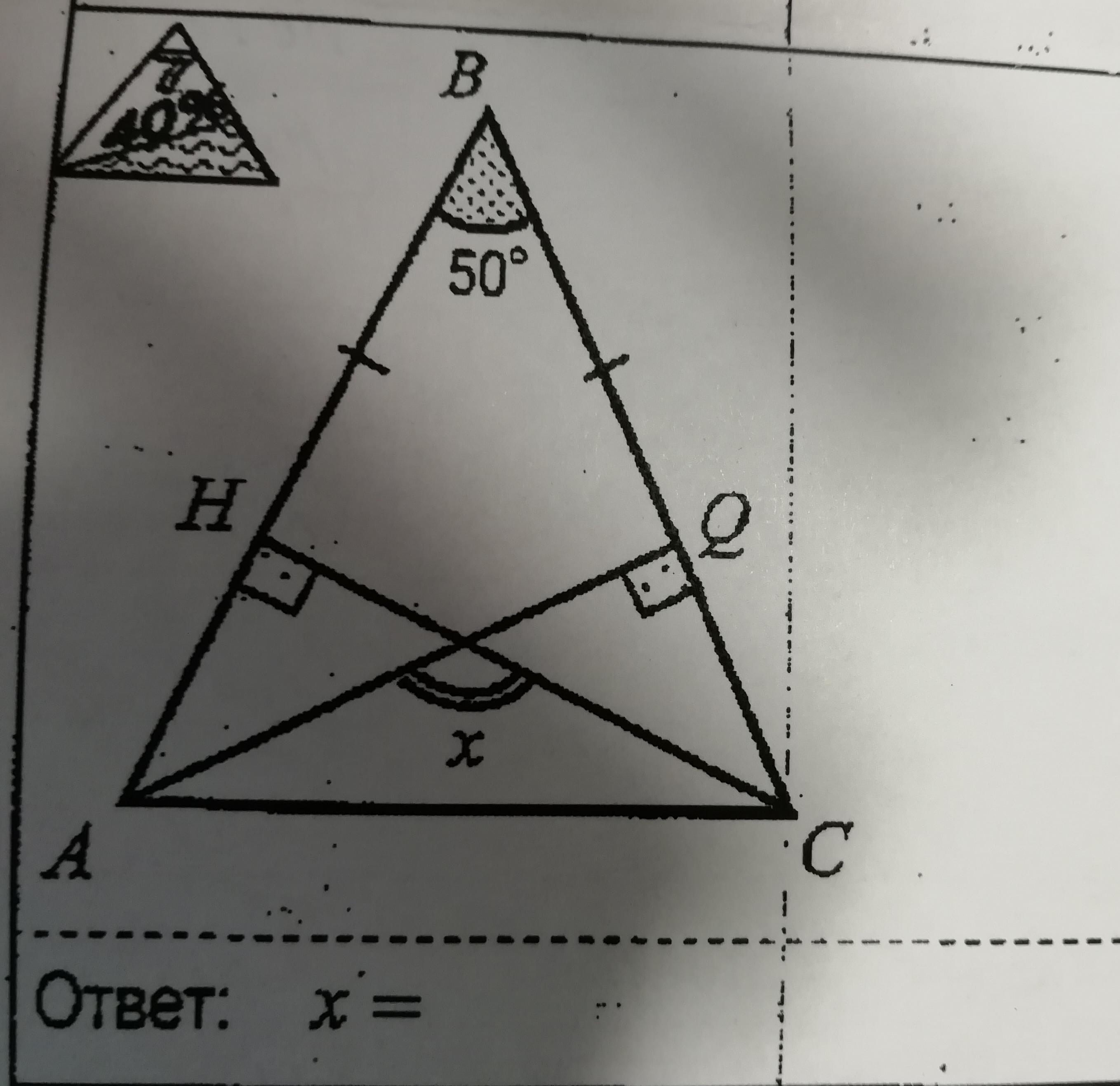 Дан равнобедренный треугольник АВС. Следовательно углы приосновании равны: угол А=угол С.