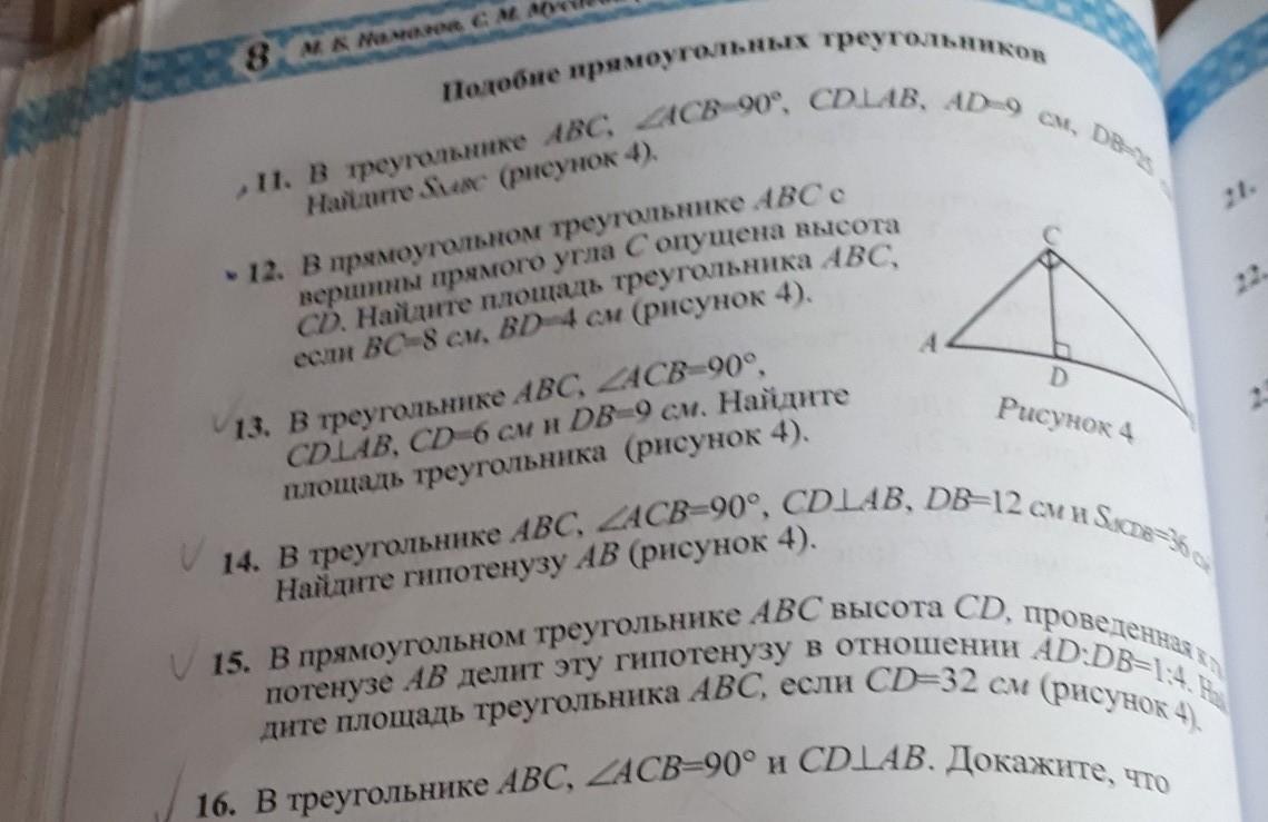 Возьмём 1 часть = х, тогда AD = х и DB = 4x. Теперь вспомним, что высота CD есть среднее геометрическое между частями гипотенузы.