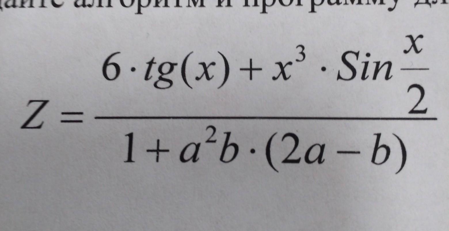 - Z := (6 * Tan(x) + x*x*x * Sin(x / 2)) / (1 + a*a * b * (2*a - b));
