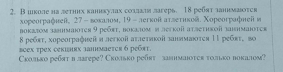 27-(8+9) = 10 ребят занимаются только вокалом