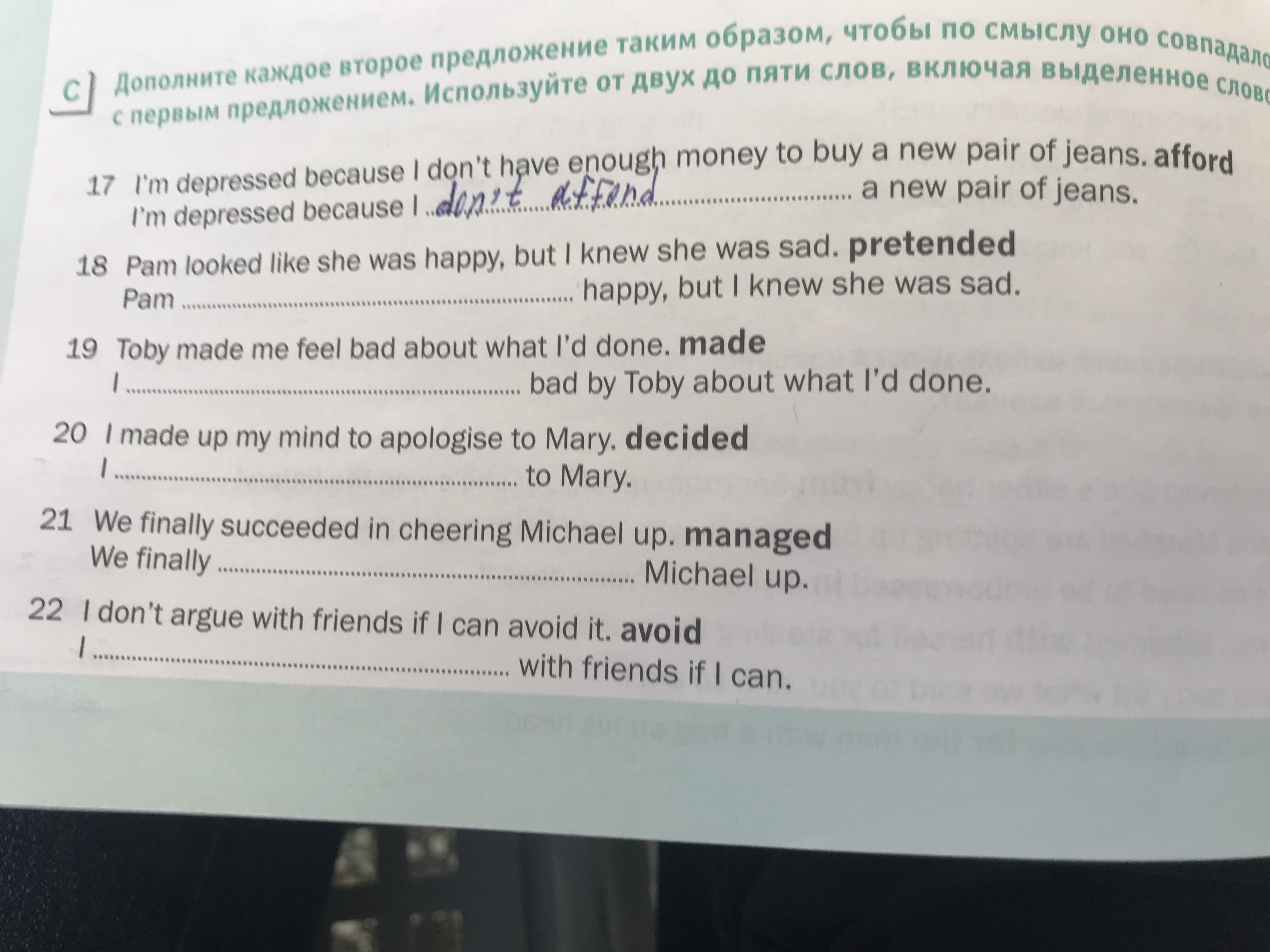 Дополните каждое второе предложение таким образом, чтобы по смыслу оно совпадало с первым предложением.