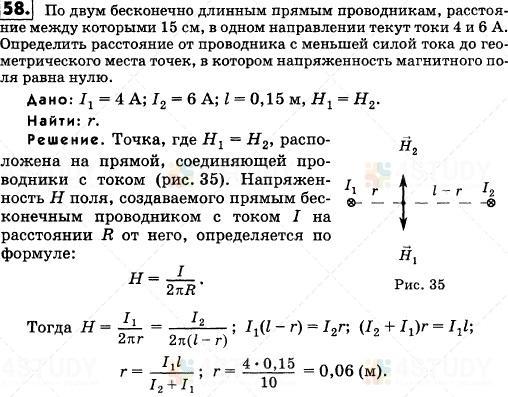 По двум бесконечно длинным проводникам текут токи силой 4А и 6А. Расстояние между проводниками 15см. Определить геометрическое место точек в которых индукция магнитного поля равна нулю.