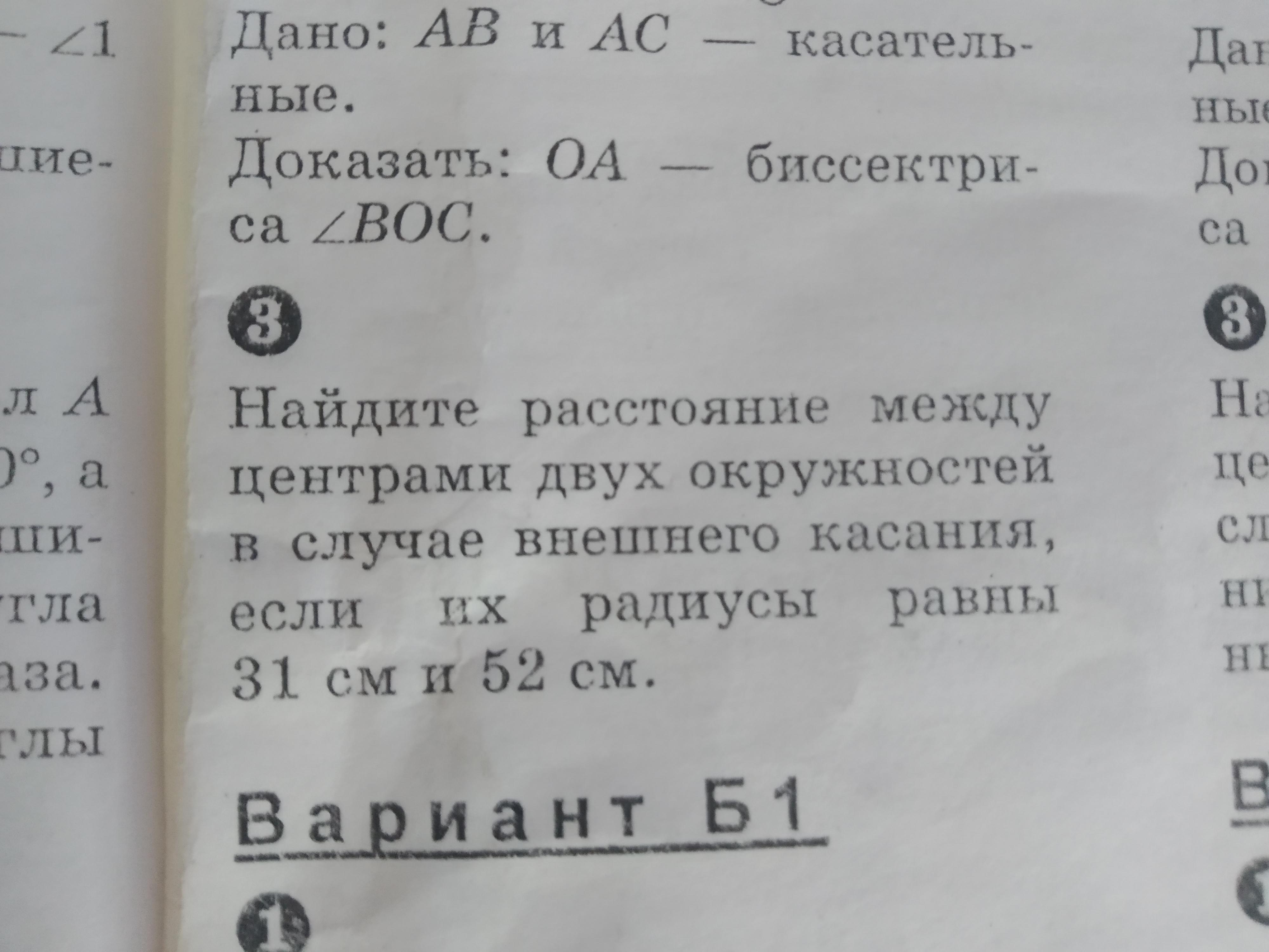 Если указано что есть касание, значит есть общая точка этих двух окружностей. Т.К. оно внешнее, то показатели радиусов суммируются. 31+52=83