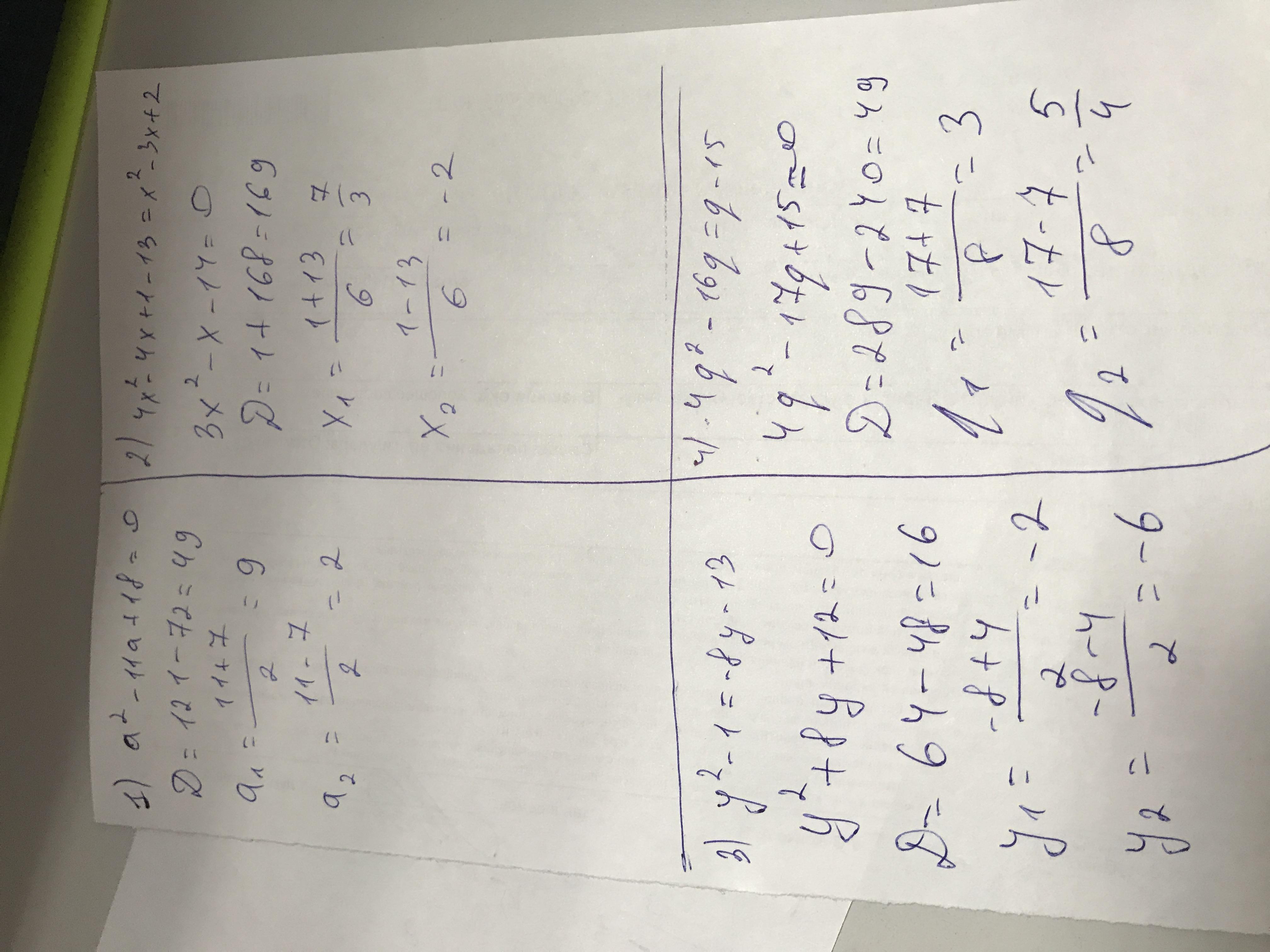 А) a²=11a-18 Б) (2x-1)²-13=(x-1)(x-2) В) (y+1)(y-1)=-8y-13 Г) q(q-4)=q-15/4