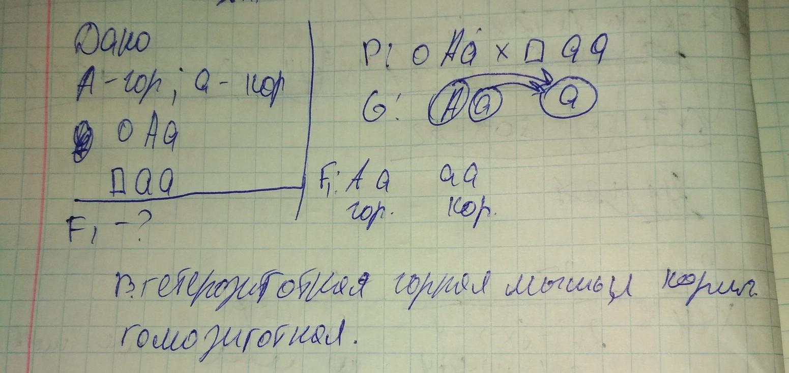 Во вложении. Розщепилось в фенотипе и генотипе 50/50% или 1:1. Типичная задача на анализирующие скрещивание.