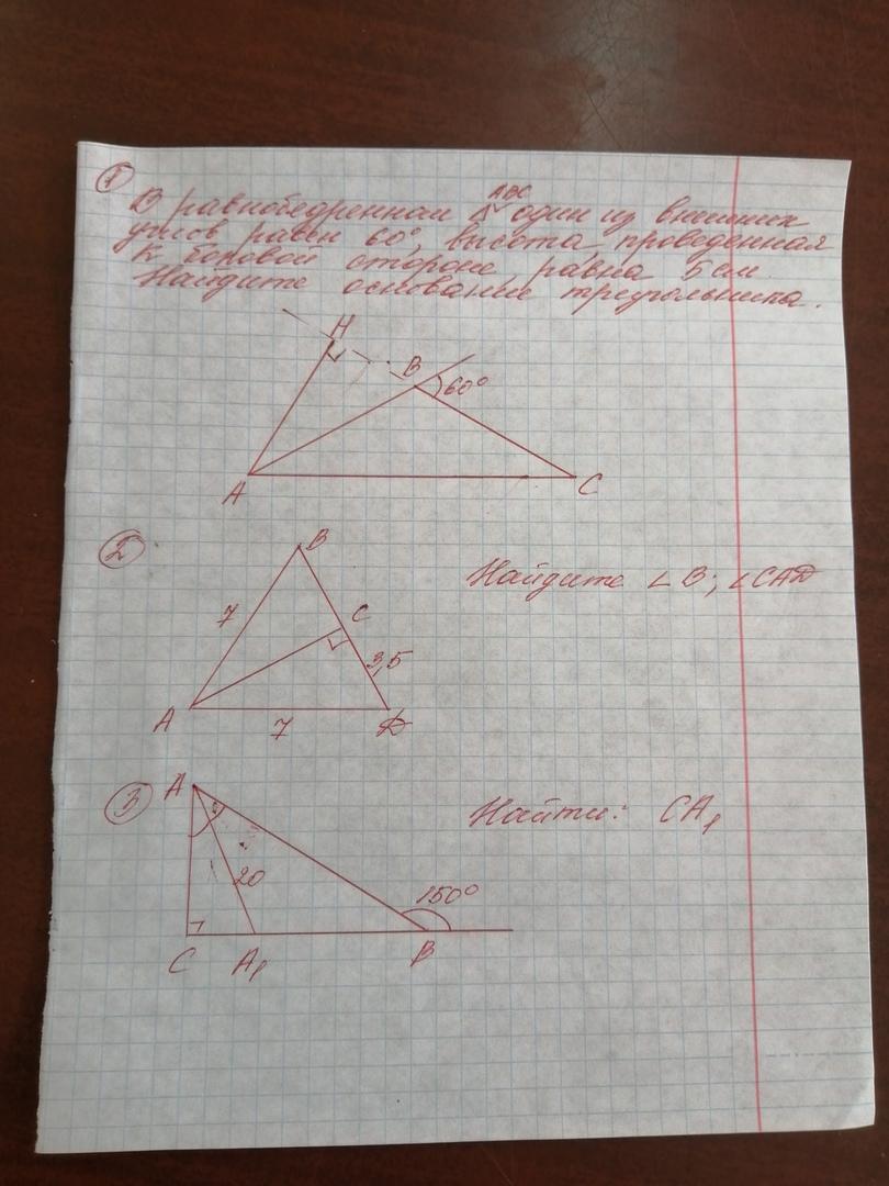 1) Острый внешний угол смежный с внутренним тупым углом. В треугольнике не может быть два тупых угла, следовательно тупой угол лежит против основания. Углы при основании равны 60°/2=30° (внешний угол равен сумме внутренних, не смежных с ним). Высота к боковой стороне образует прямоугольный треугольник CAH и лежит в нем против угла 30°, следовательно равна половине гипотенузы. AC=2AH=5*2=10.