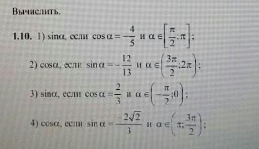 смари, есть такая волшебная функция cos^2x+sin^2x=1 .чтобы найти -синус отнимаешь от 1 косинус(1-16/25)=3/5. а теперь одз. у тебя синус находится на окружности от п/2 до п,значит он положительный.тобишь ответ синус а =0.6.остальные подобные