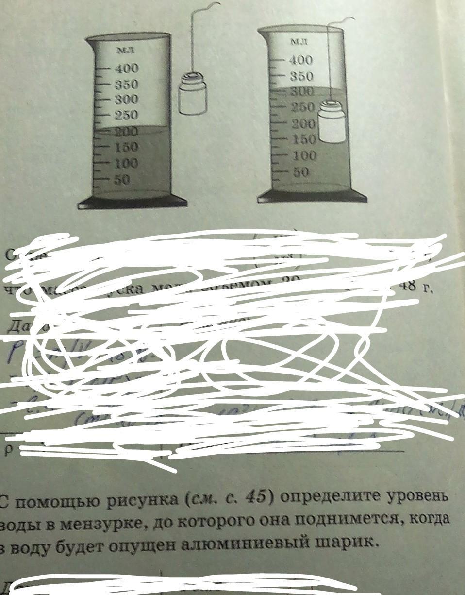 на второй картинке изображена мензурка с опущенной в нее алюминиевым шариком.уровень воды 300мл