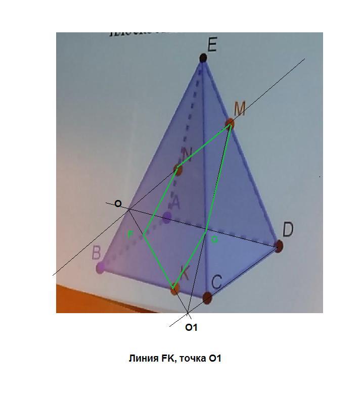 1. Постройте линию пересечения плоскости MNK и ABC, найти точку пересечения этой линии с прямой CD, построить сечение многогранника плоскостью MNK.