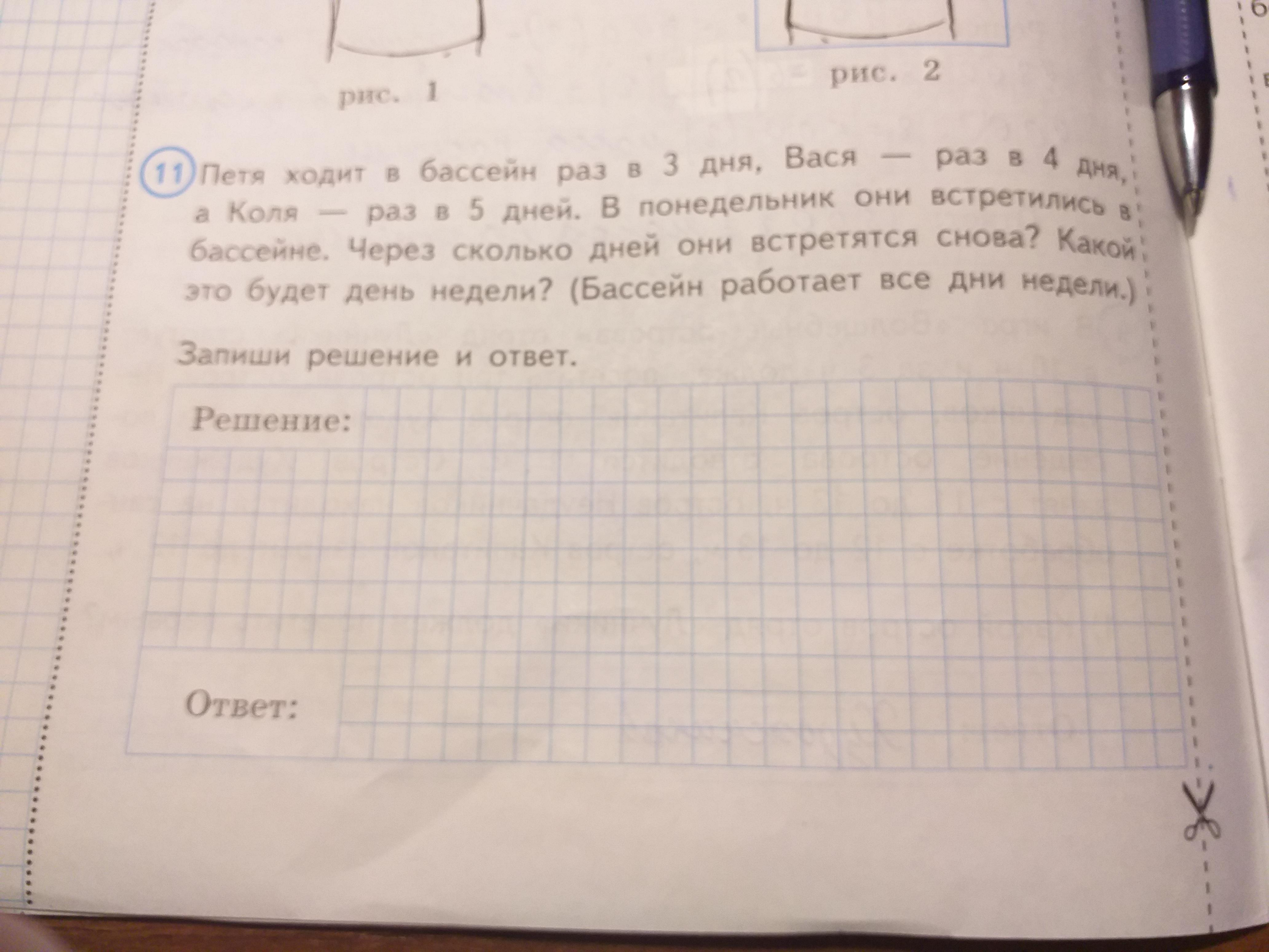 Нужно найти наименьшее общее кратное чисел . 3,4.5. Это число 60. Значит они встретятся снова через 60 дней. 60 дней это 8 полных недель и 4 дня (60 : 7 = 8 (ост.4)). Значит понедельник + 4 дня - это будет пятница