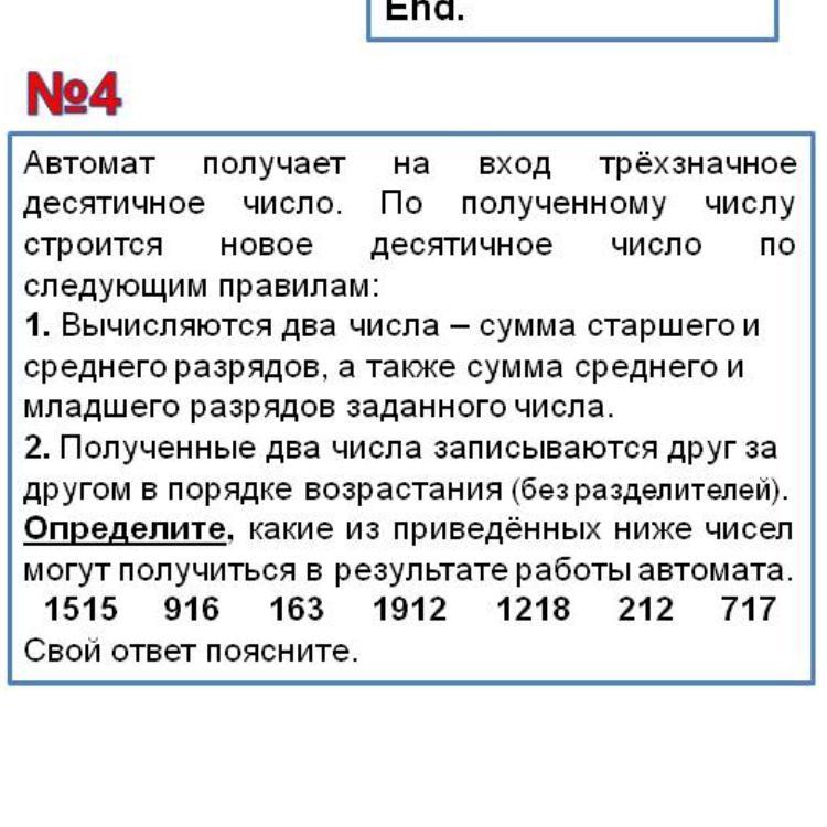 2)916 это допустим 279 тогда 2+7=9 а 7+9=16 записать в порядке возрастания получится 916 то есть это число может получится