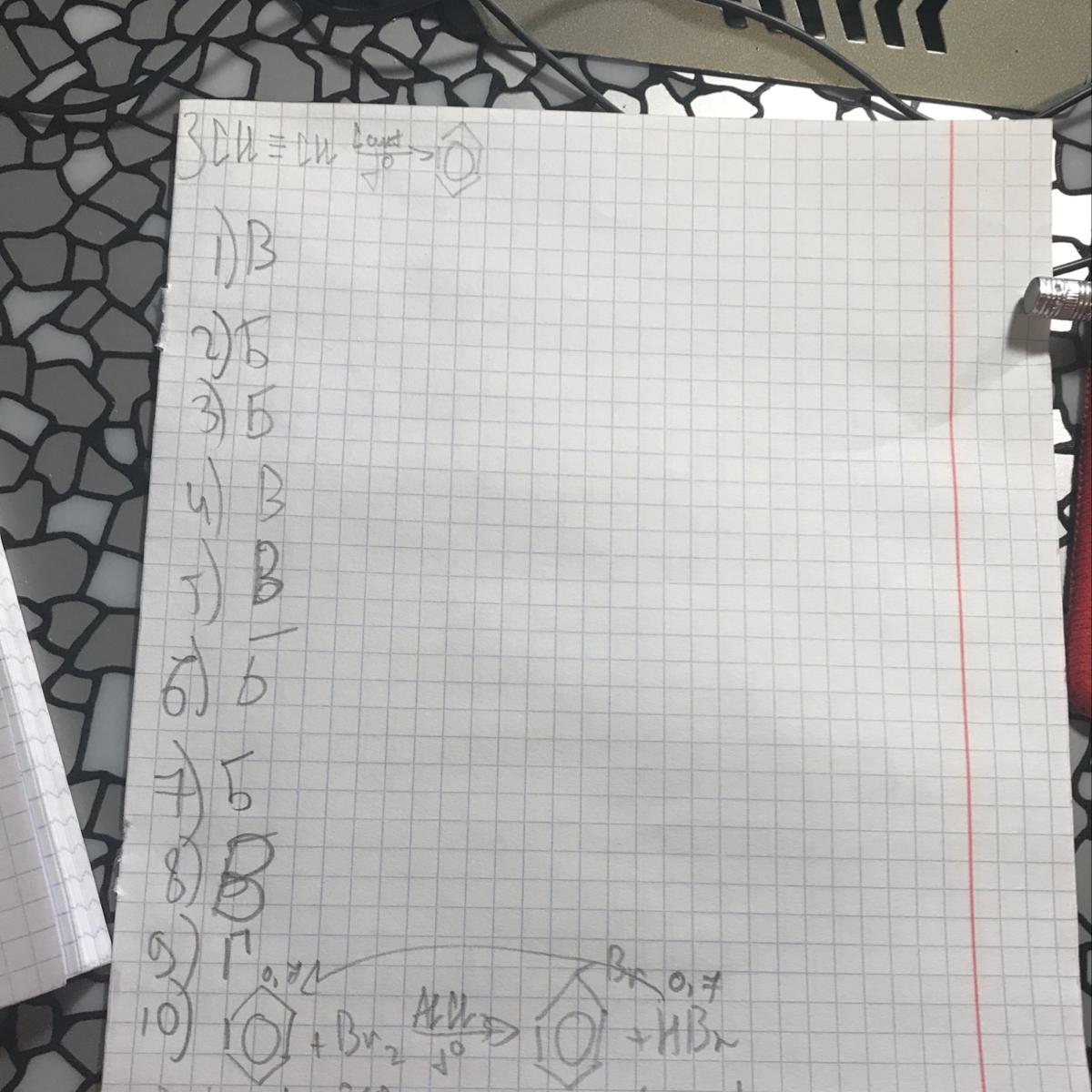 10. Во время бромирования бензола в присутствии катализатора образовалось 15,68 л (н.у)