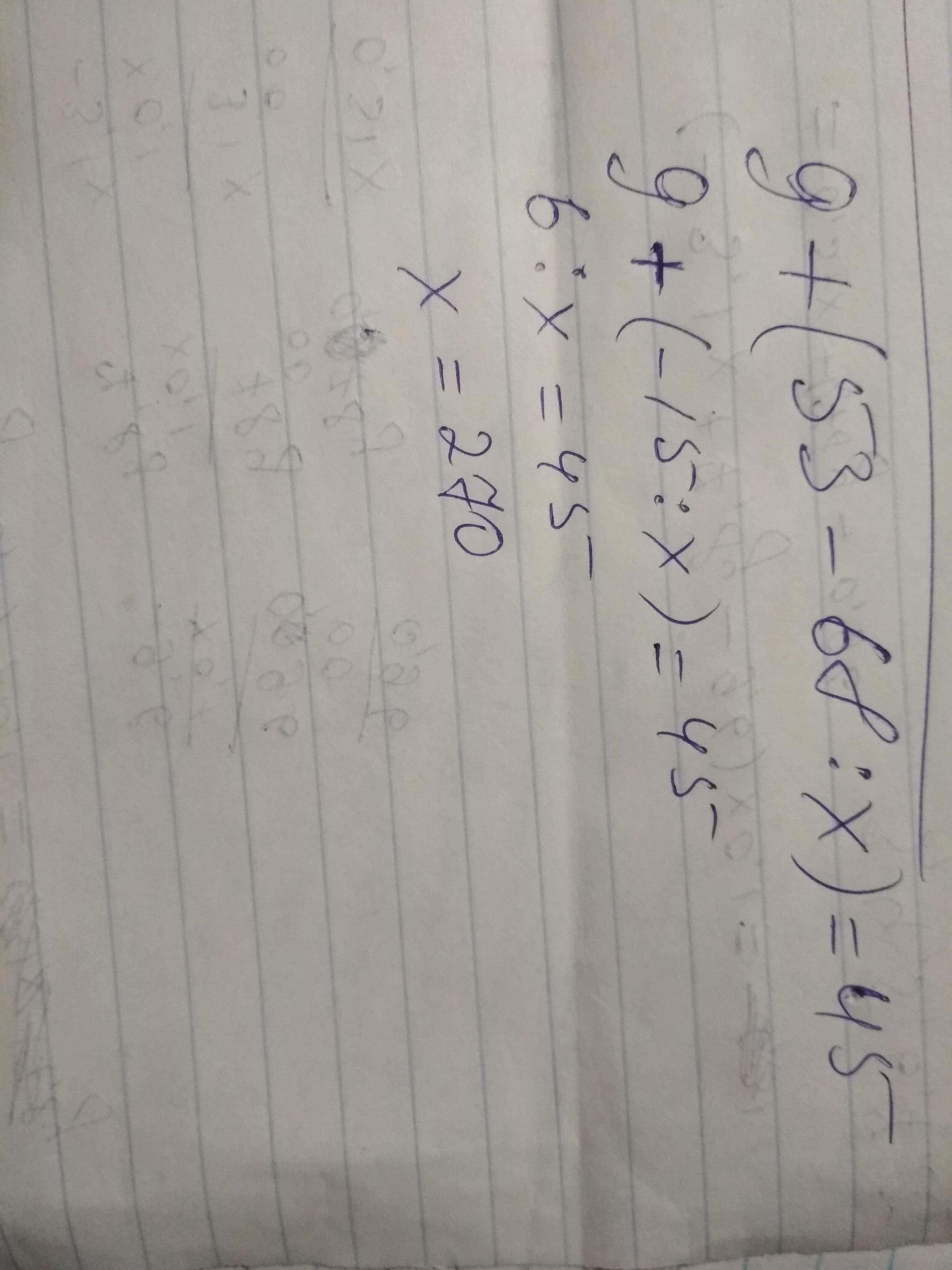 Ответ: 9 + (53-68:x)=45 ⇒53-68/х=45-9=36⇒68/х=53-36=17⇒х=68/17=4.