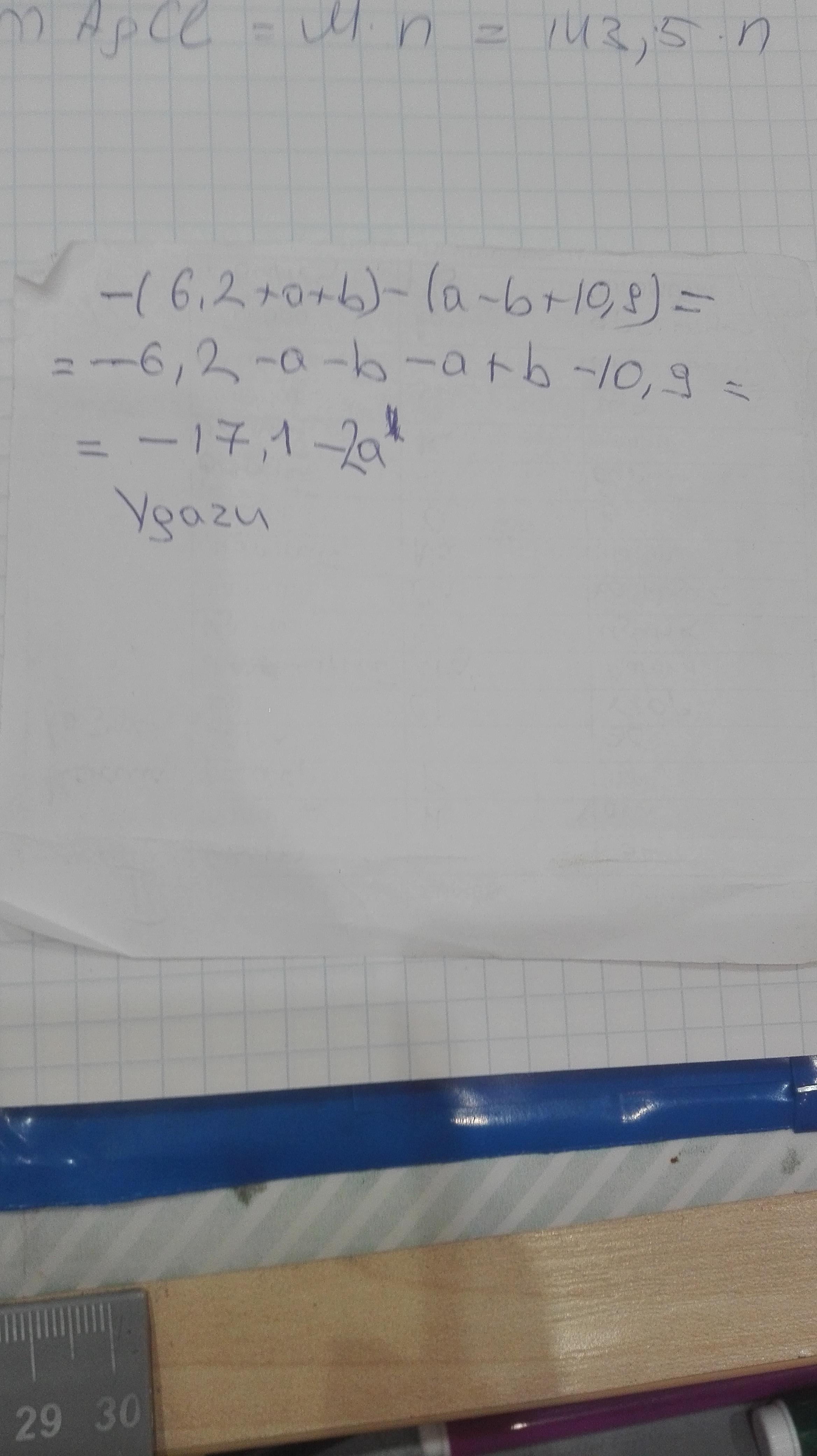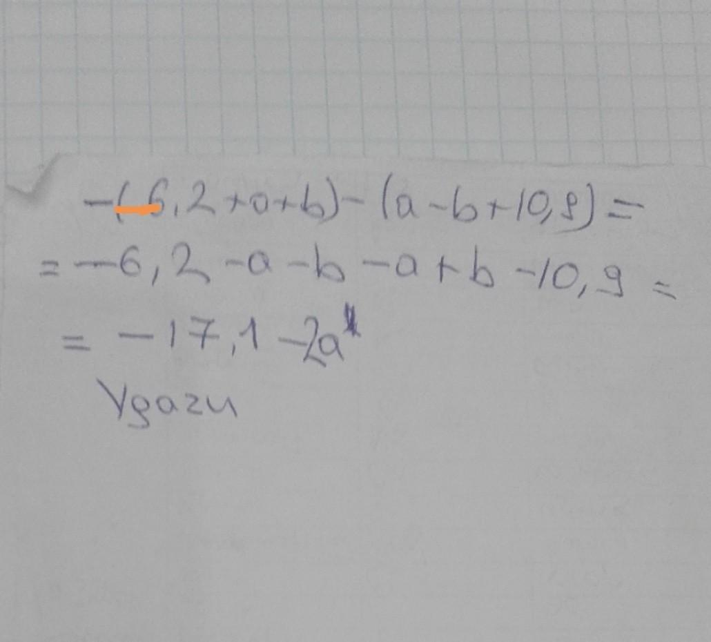 То есть, когда мы отнимаем от -6,2 число -10,9 мы должны сначала сложить модули(6,2+10,9=17,1). Т.к. при сложении двух отрицательных чисел итог получается отрицательный, мы дописываем минус. Ответ: -17,1
