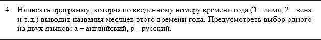 case 4: cout << "сентябрь, октябрь, ноябрь" << endl; break;