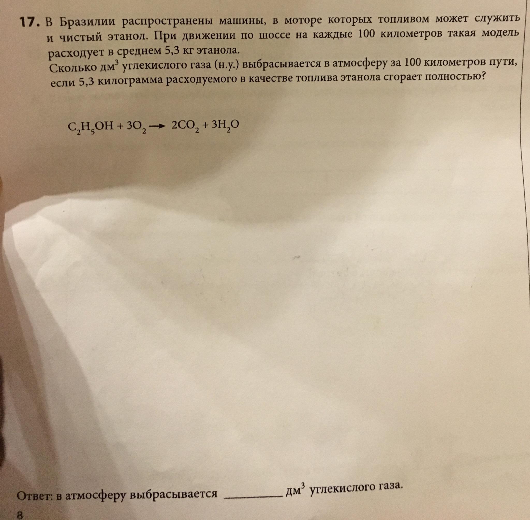 В атмосферу выбрасывается 5161,7 дм 3 углекислого газа, нашли по пропорции между C2H5OH массой 5300(г) с M(C2H5OH) =46г/моль и CO2 с M(CO2) =44*2г/моль ;Vm=22,4(дм3);обозначили объём CO2-за x(дм3) ,находим x:x=5300г*67,2дм/46г=5161,7 дм 3