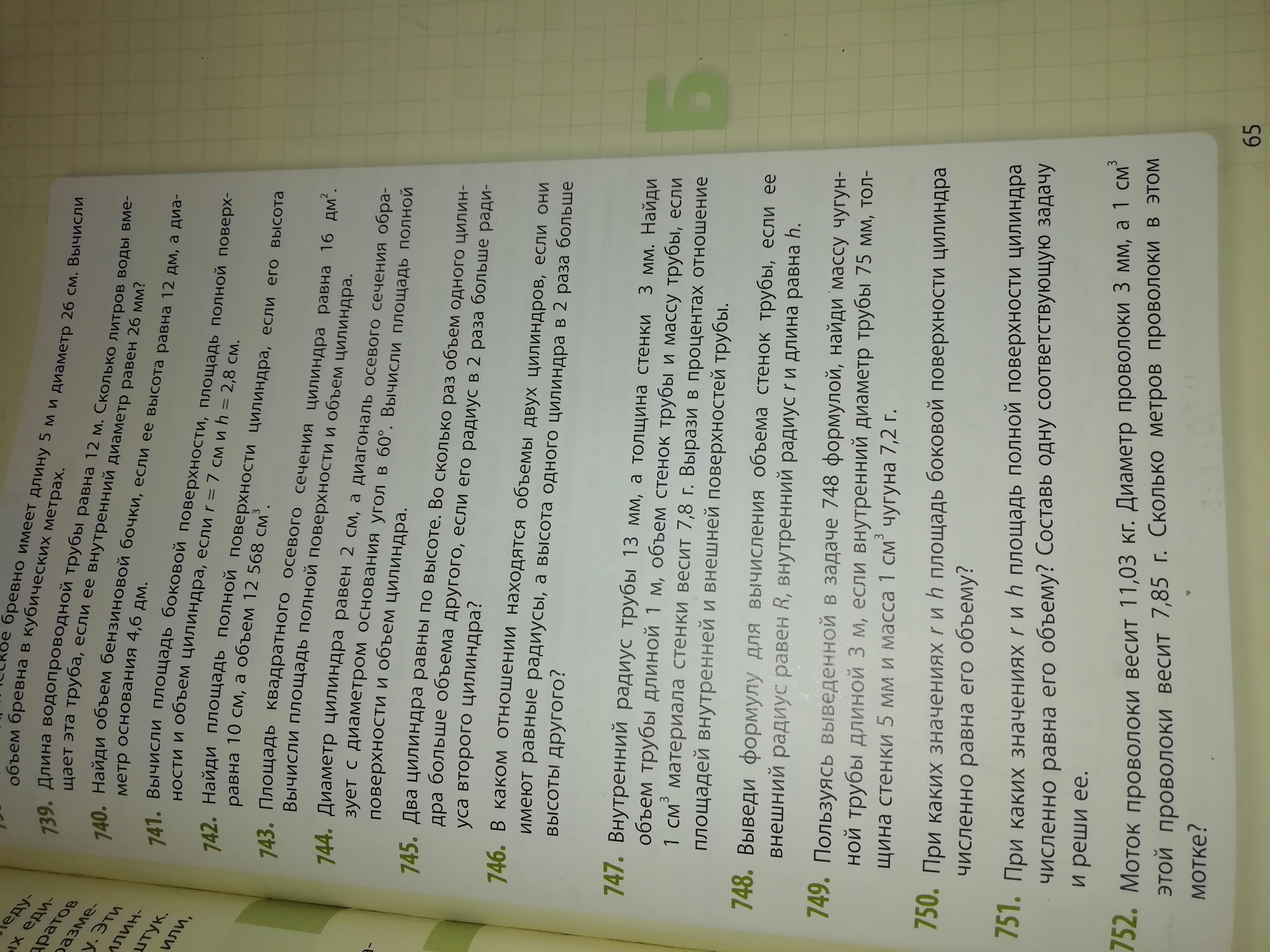 Номера 744(ответ Sполн=28.0см^2, V=10.9см^3)