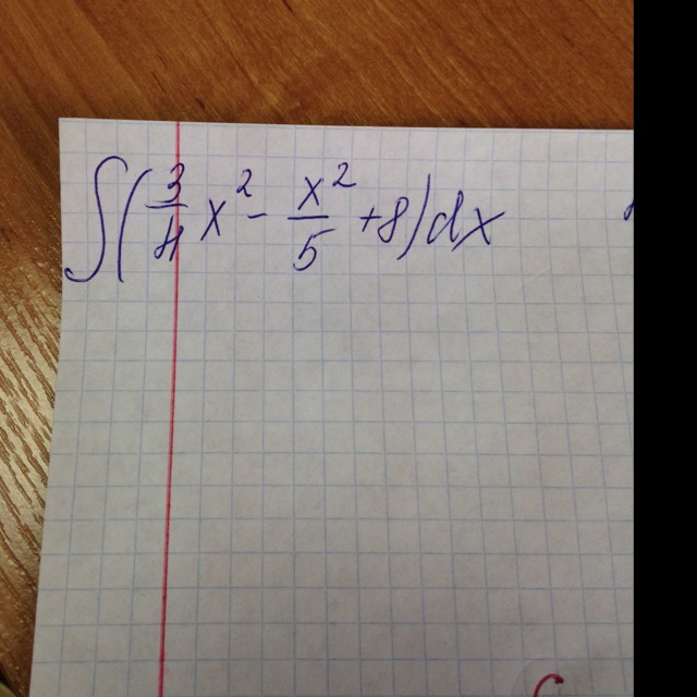 int(frac{3}{4}x^2-frac{x^2}{5}+8)dx=int(frac{11}{20}x^2+8)dx=frac{11}{20}cdot frac{x^3}{3}+8x+C=\\=frac{11}{60}cdot x^3+8x+C