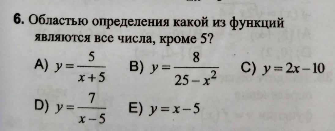 Не может быть у=0. Это по правилу. 5-5=0 это не правильно. Поэтому ответ D