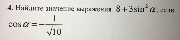 sin²α=1-cos²α=1-(-1/√10)²=1-1/10=9/10=0.9