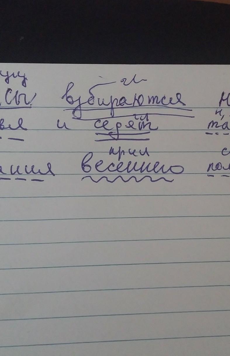 Синтаксический разбор предложения: « Лисы взбираются на деревья и седят там до окончания весеннего половодья.»