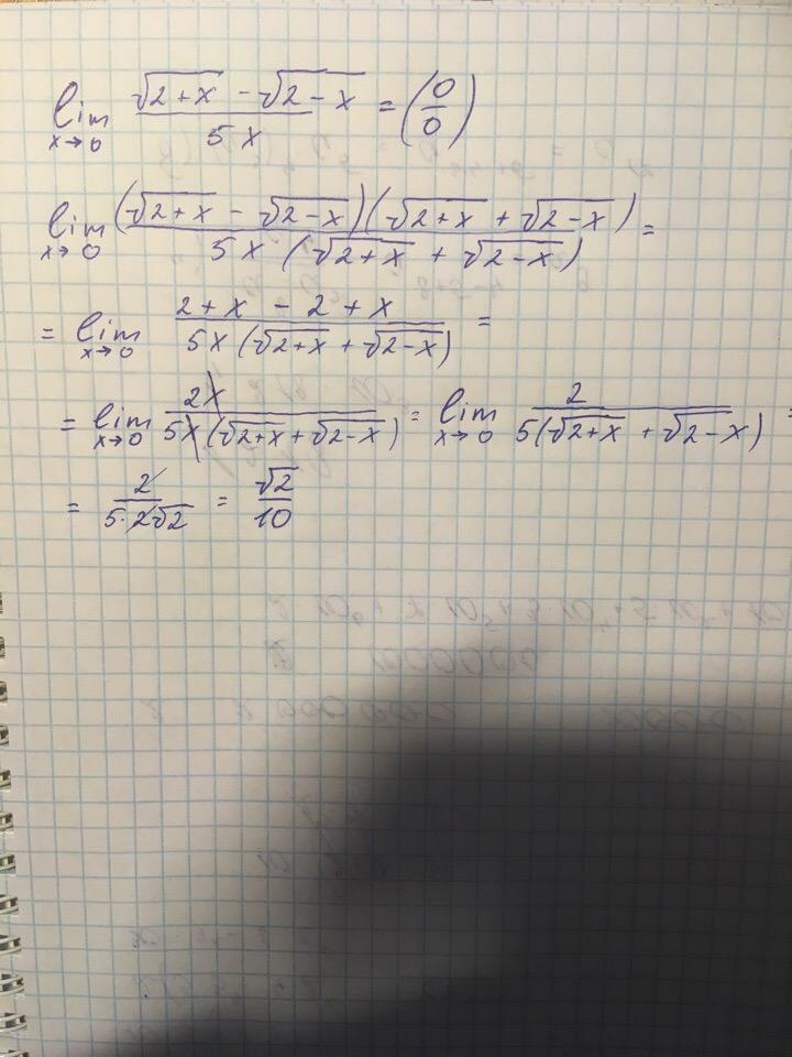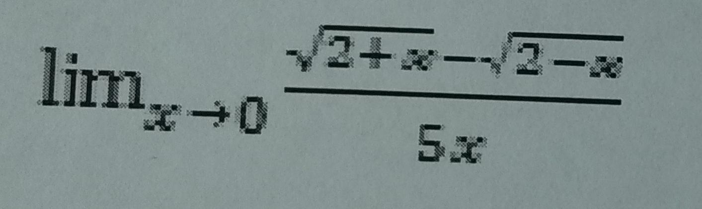 Lim(x→0) √(2+x)-√(2-x)/5x = √2/10