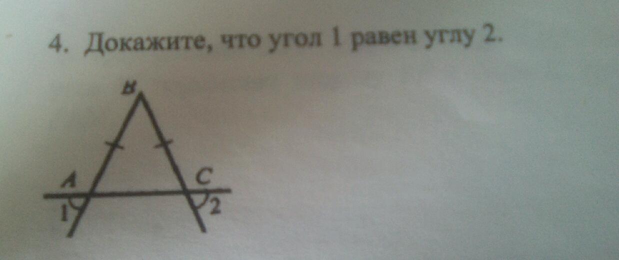 Так как ∆ABC равнобедренный, то угол BAC=углу BCA. Значит угол 1 равен углу 2