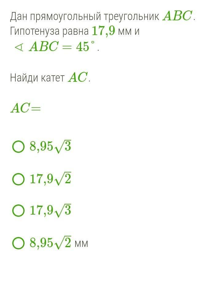 Ответ :катет АС = 8,95√2 мм