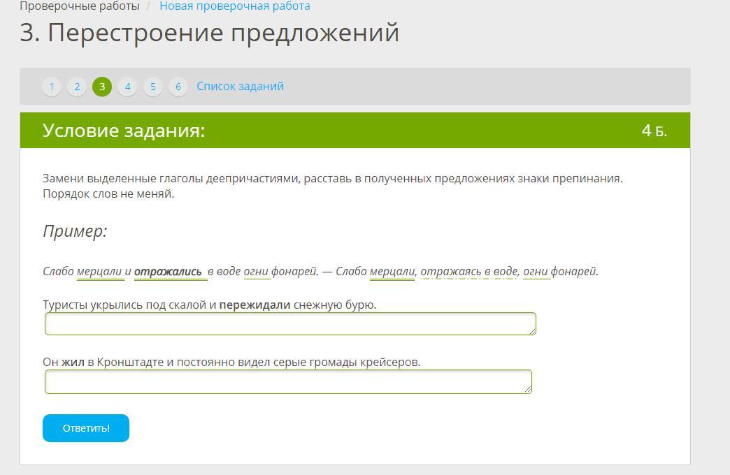 Замени выделенные глаголы деепричастиями, расставь в полученных предложениях знаки препинания. Порядок слов не меняй.
