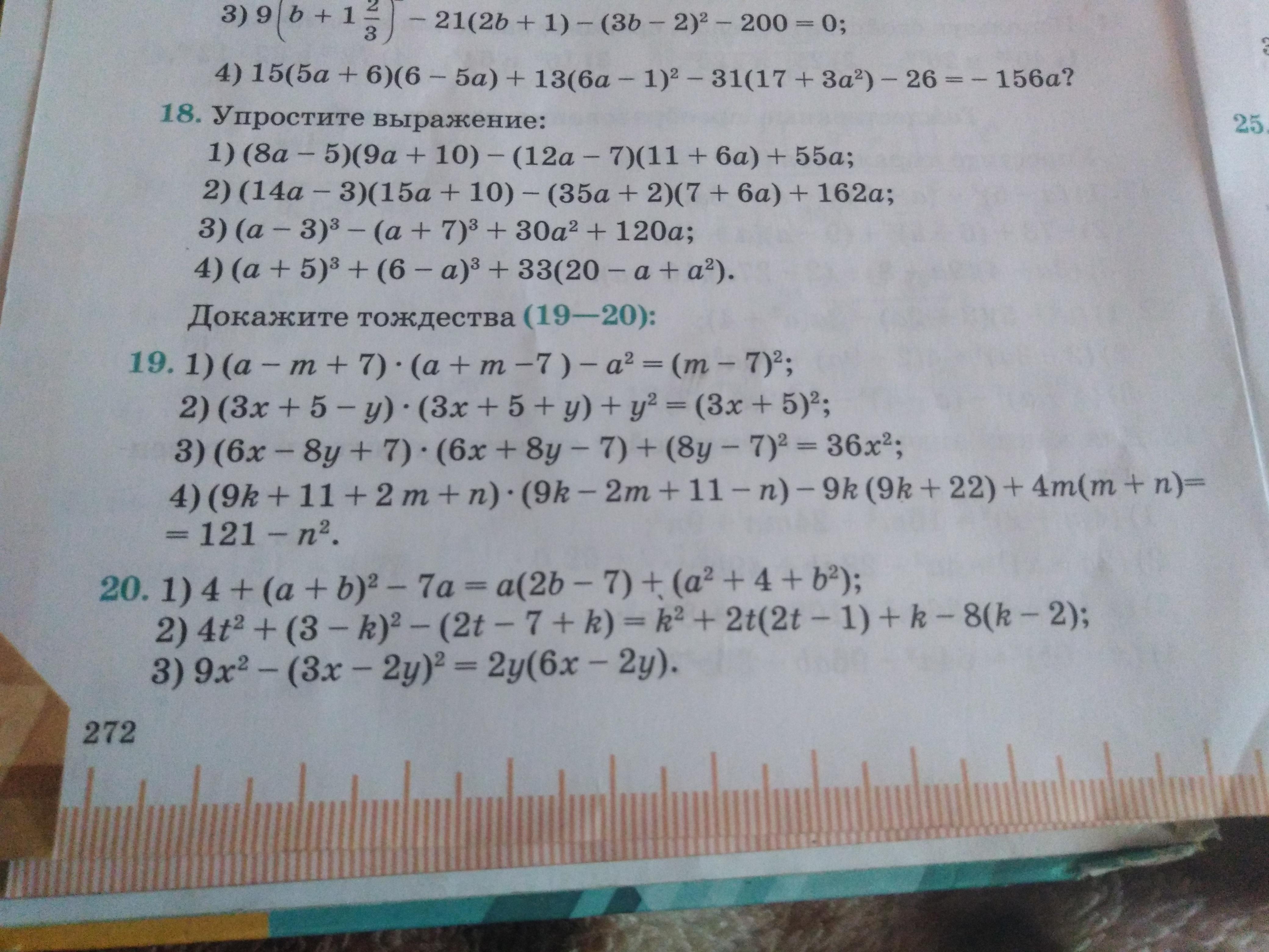 19. (6x - 8y +7)(6x + 8y - 7) + (8y-7)² = (6x - (8y -7))(6x + (8y - 7)) + (8y-7)² = 36x² - (8y - 7)² + (8y - 7)² = 36x² что и требовалось доказать.