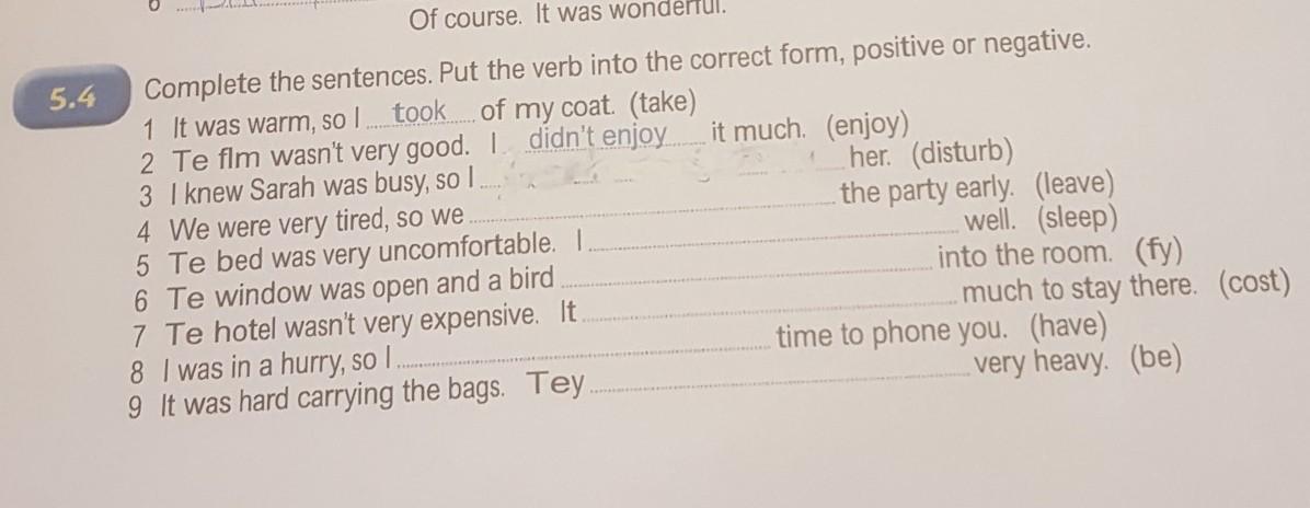 2 Te flm wasn't very good. I didn't enjoy it much. (enjoy)