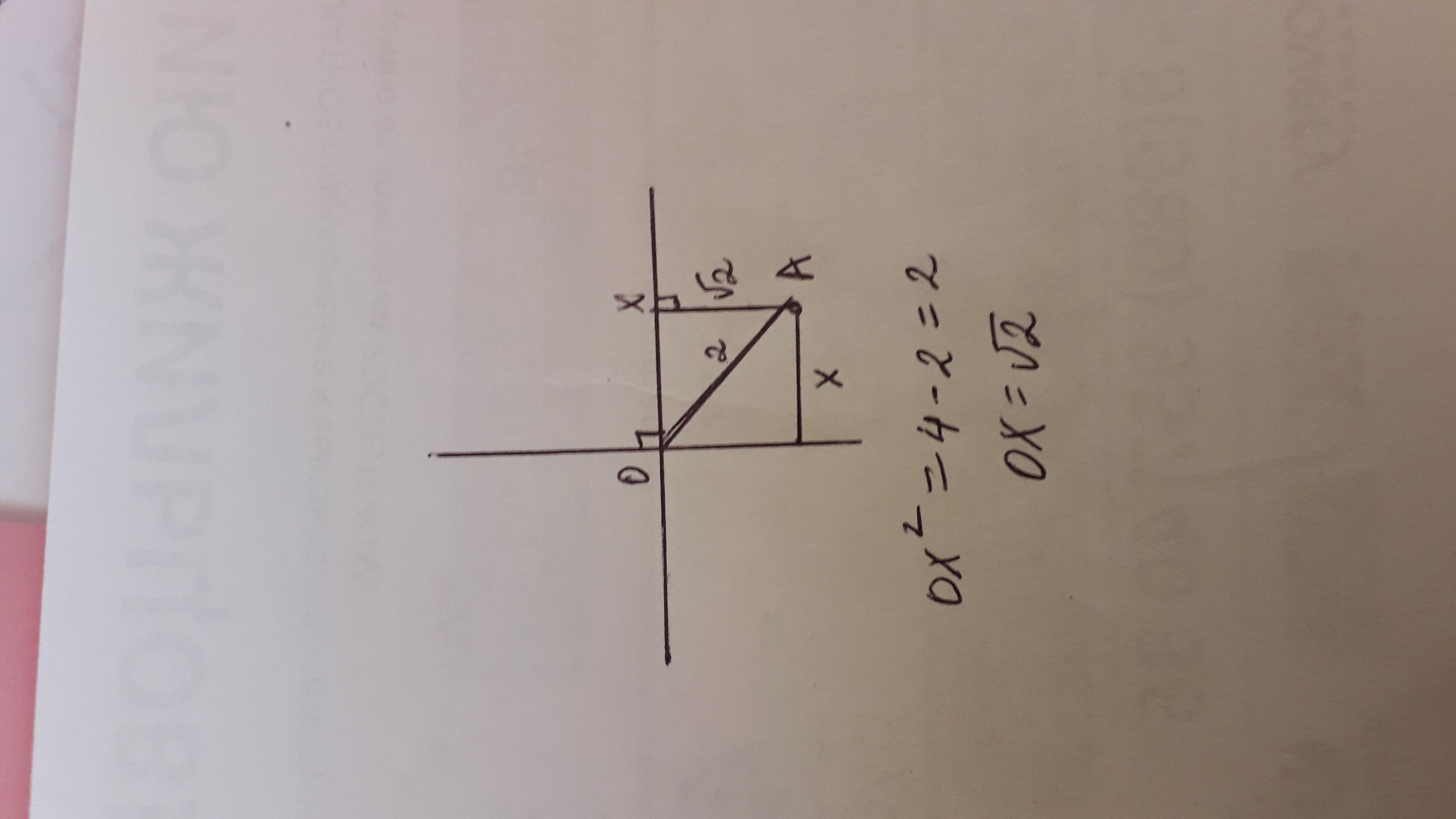 Точка A находится на расстоянии 2см от линии пересечения двух перпендикулярных плоскостей. Найти расстояние от точки А до одной из плоскостей, если расстояние от точки A до второй плоскости равно √2см