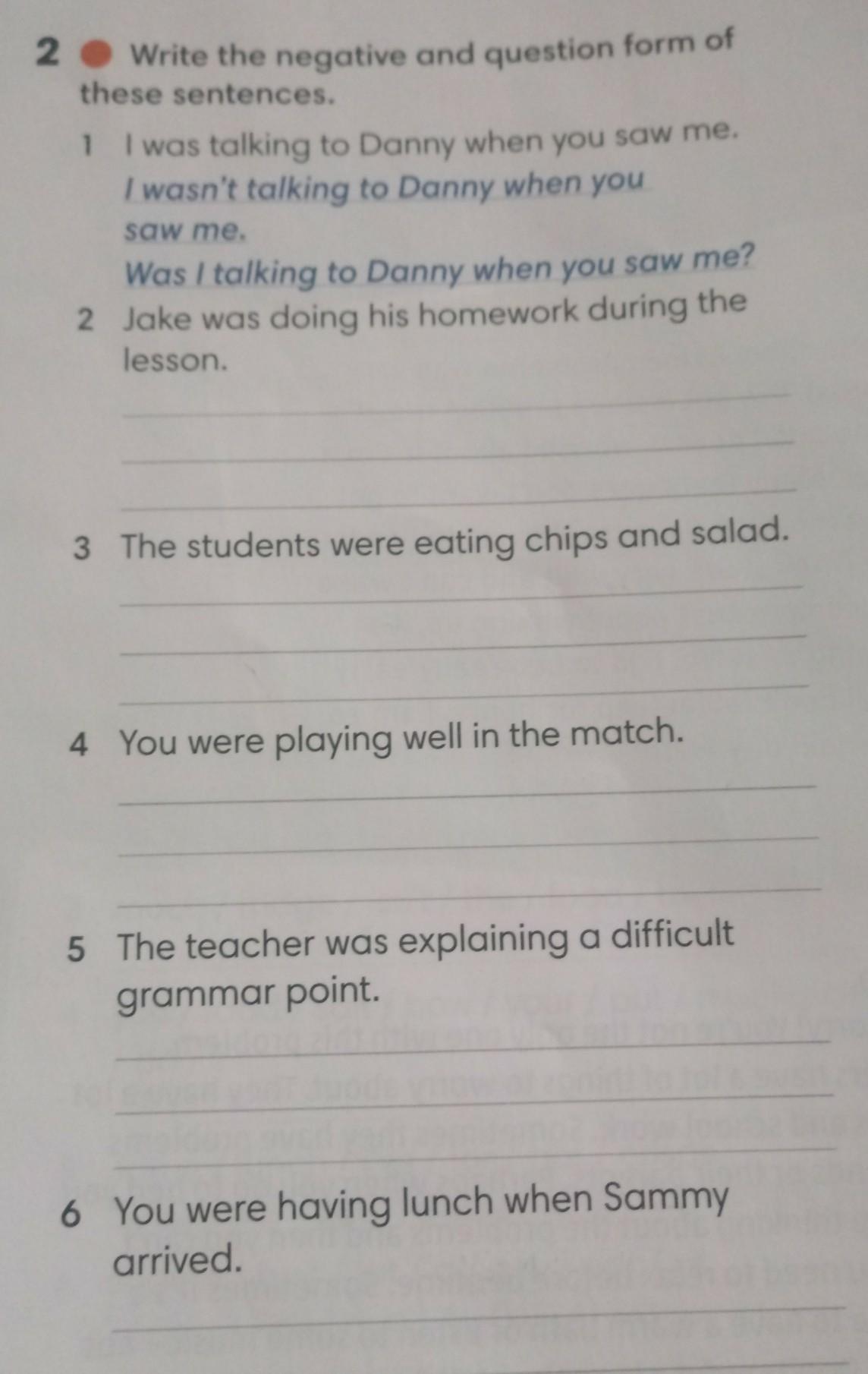 2 Jake wasn`t doing his homework during the lesson. Was Jake doing his homework during the lesson?