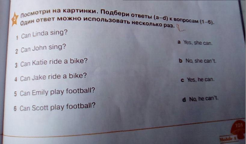 1)Can Linda sing? - a. Yes, she can
