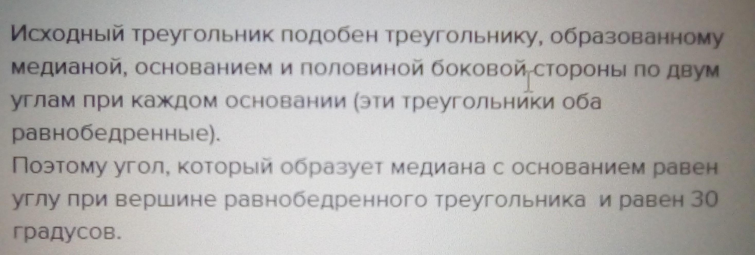 Угол при вершине равнобедренного треугольника равен 30°, а