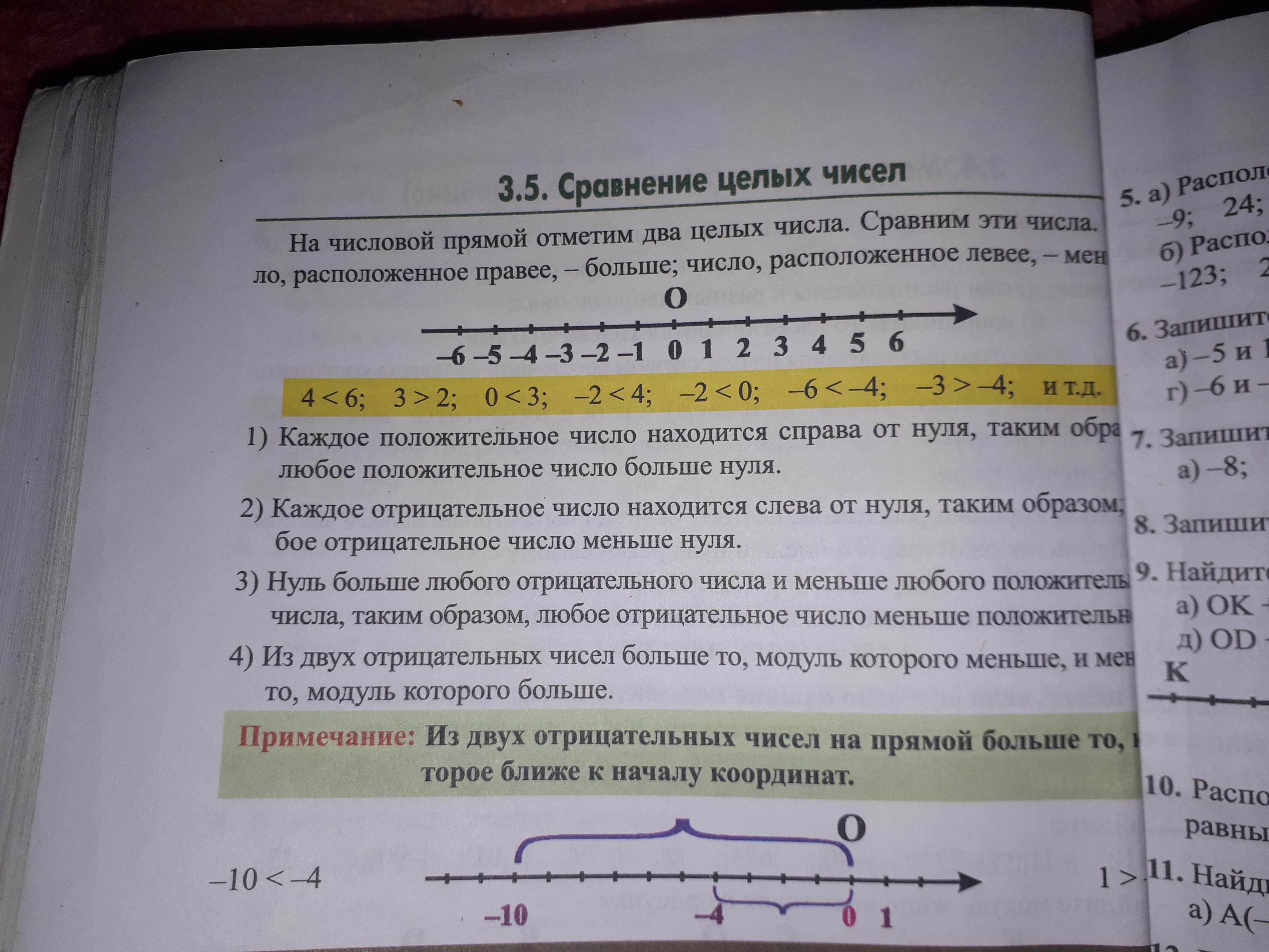 Как сравнить два числа на координатной прямой? Как сравнить положительное и отрицательное число? Как сравнить нуль и положительное число, нуль и отрицательное число? Как сравнить два отрицательных числа?