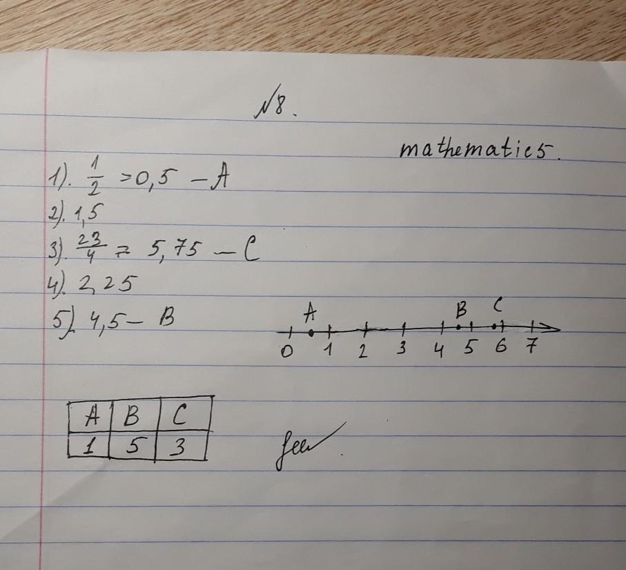 Соответствие между точками и их координаты на координатора прямой точки А,В,С.