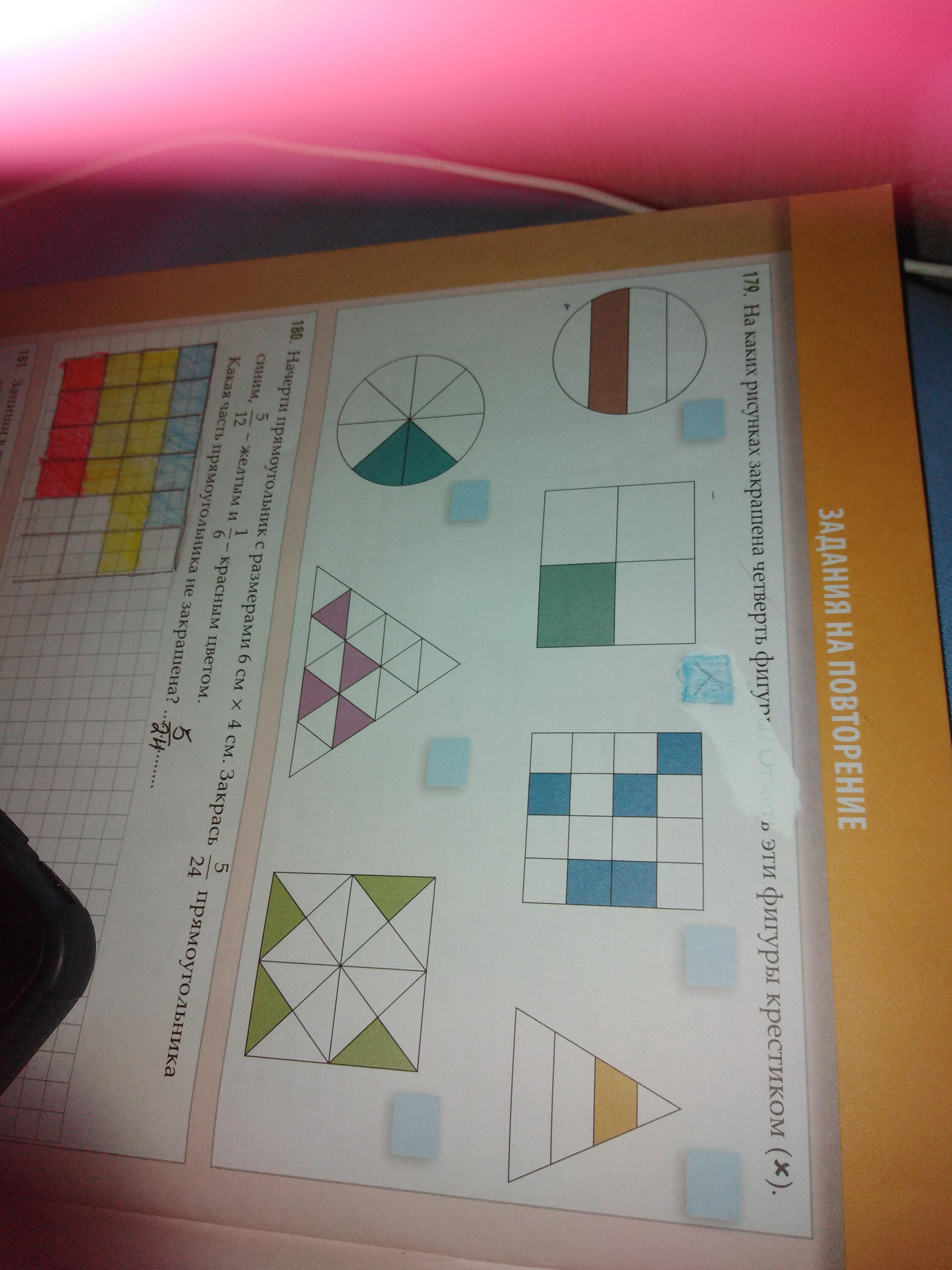 Номера рисунков у которых закрашена четверть фигуры: