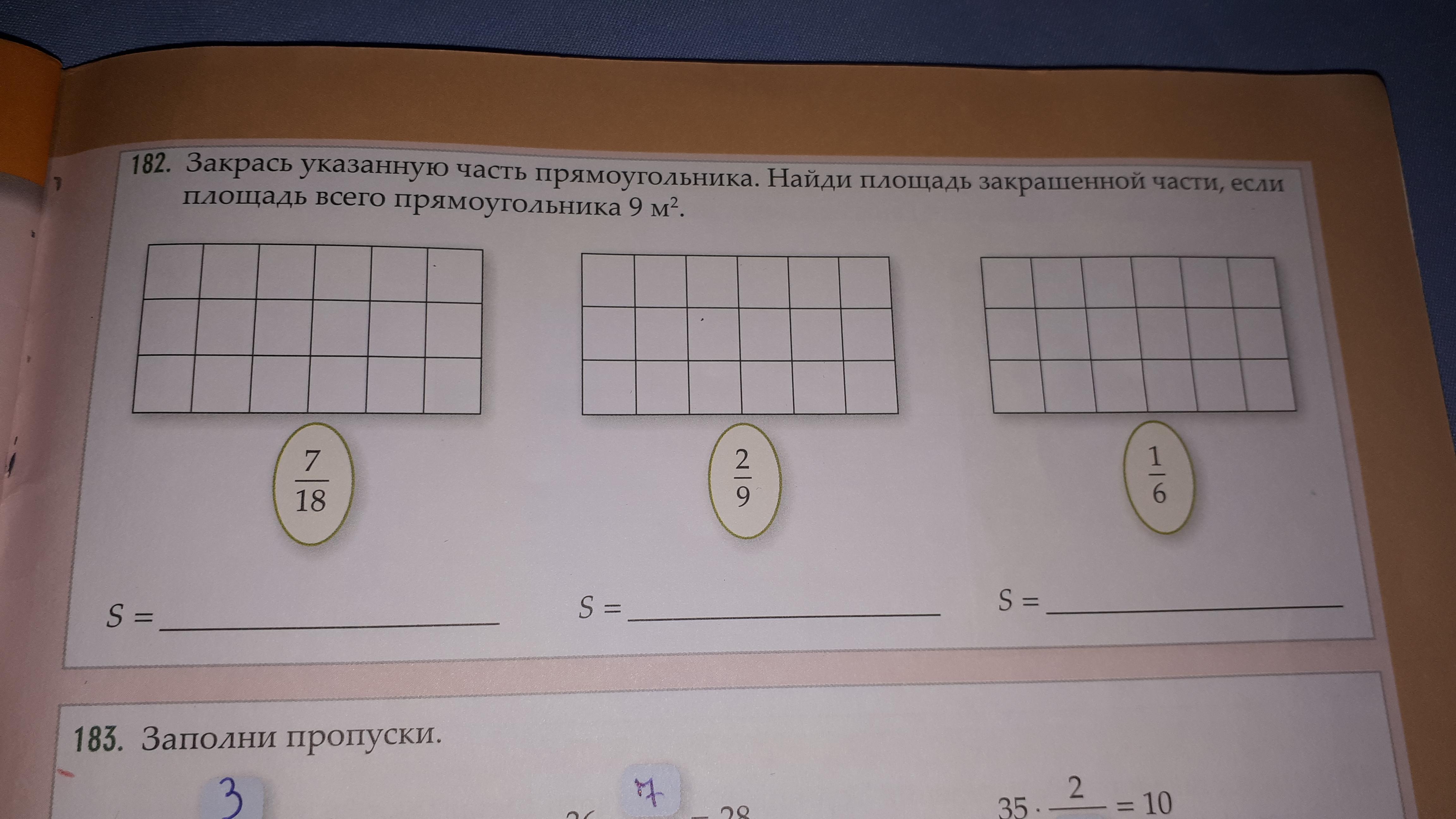 1) 9 / 18 * 7 = 3,5 м² ( 7 клеток )
